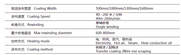 集放料、涂布、烘干、熱風循環(huán)、牽引、分切、收卷等生產工序一機完成。